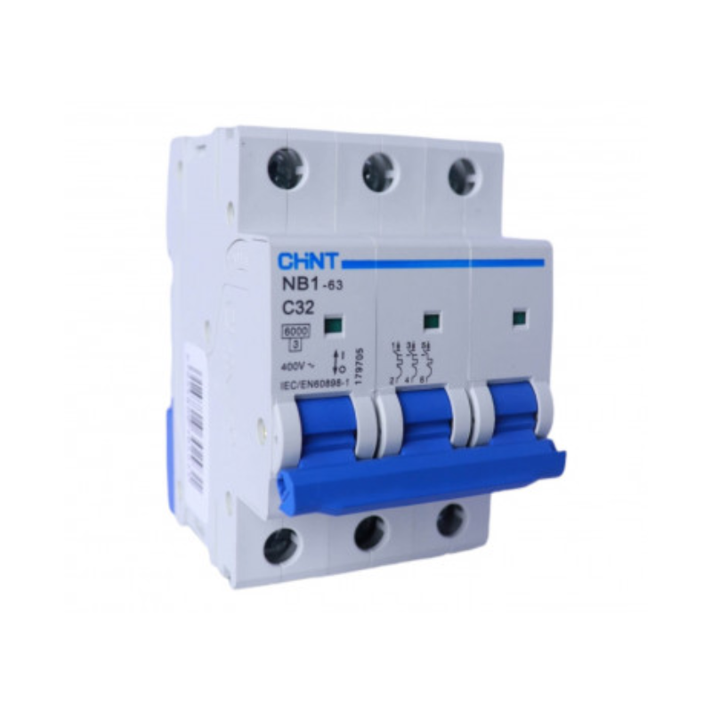 INTERRUPTOR TERMOMAGNÉTICO 3P 32A 230VAC CURVA C 6KA PARA RIEL DIN CHINT NB1-63 3P C32